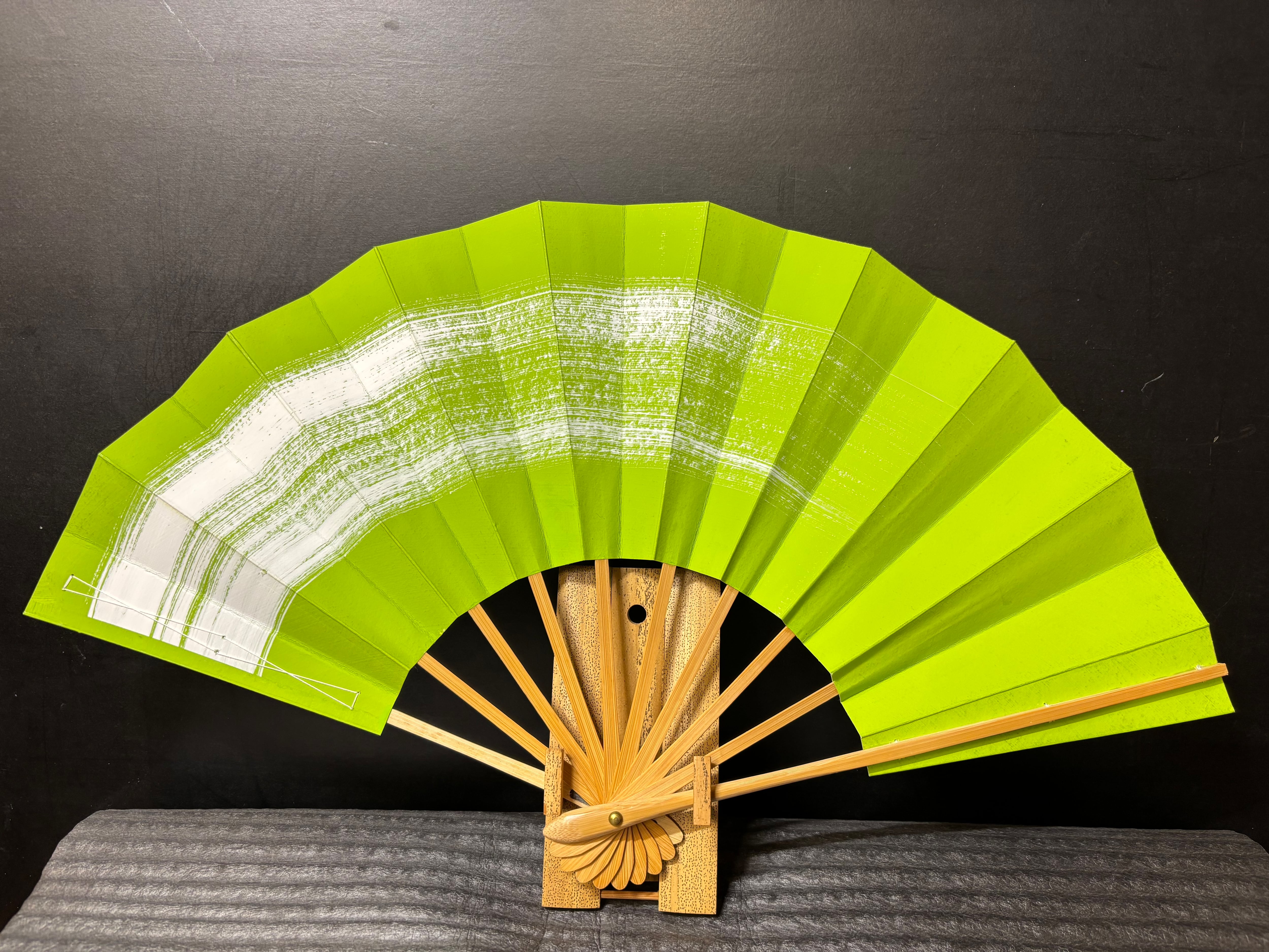 舞扇子 黄緑色地 白色かすみ 白竹【2509-501】