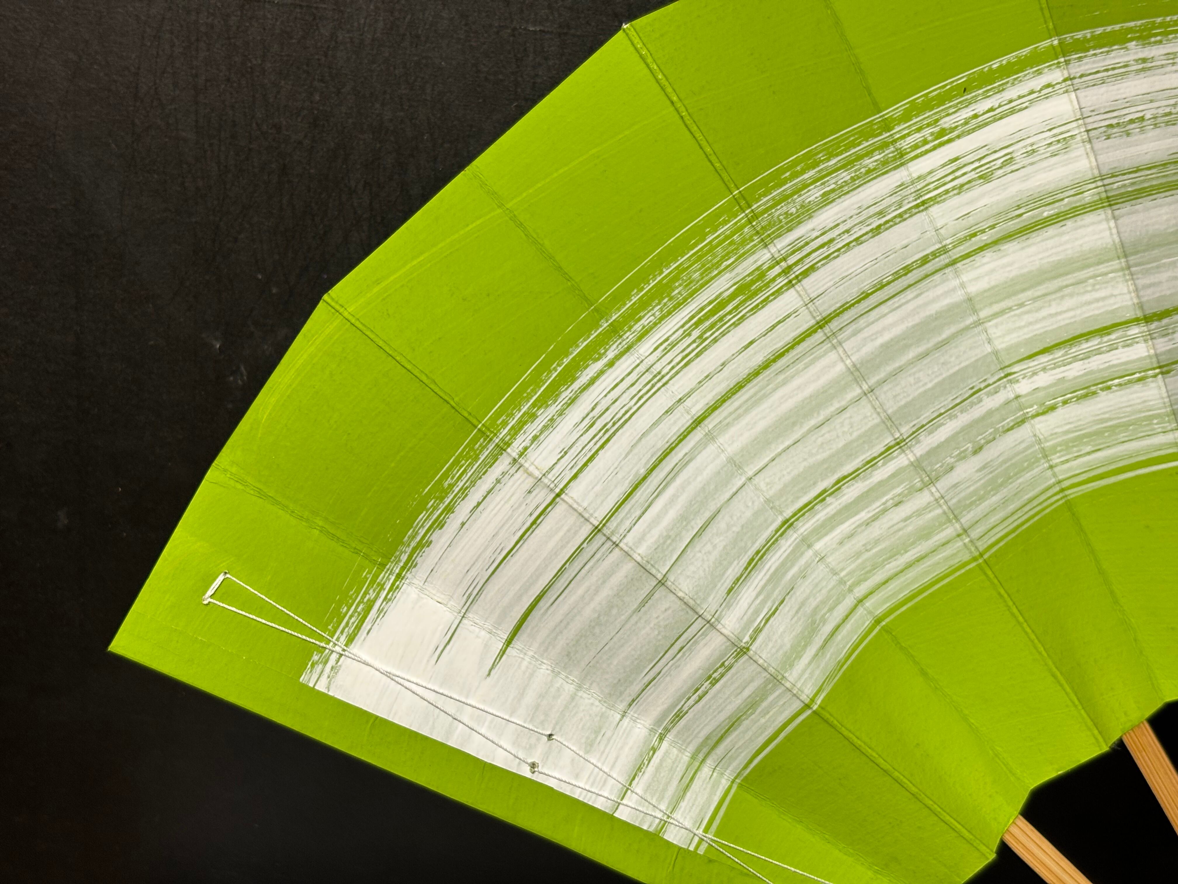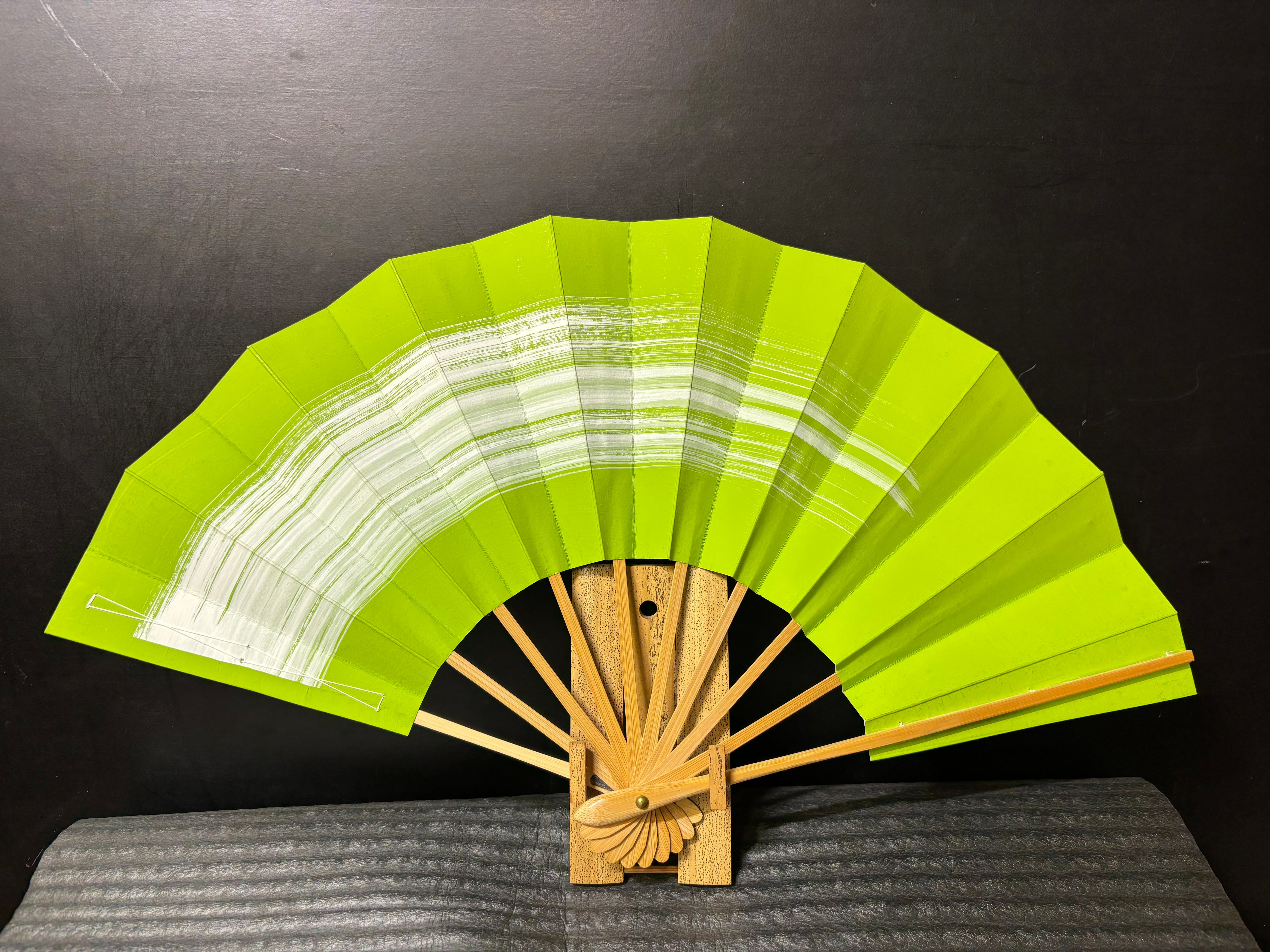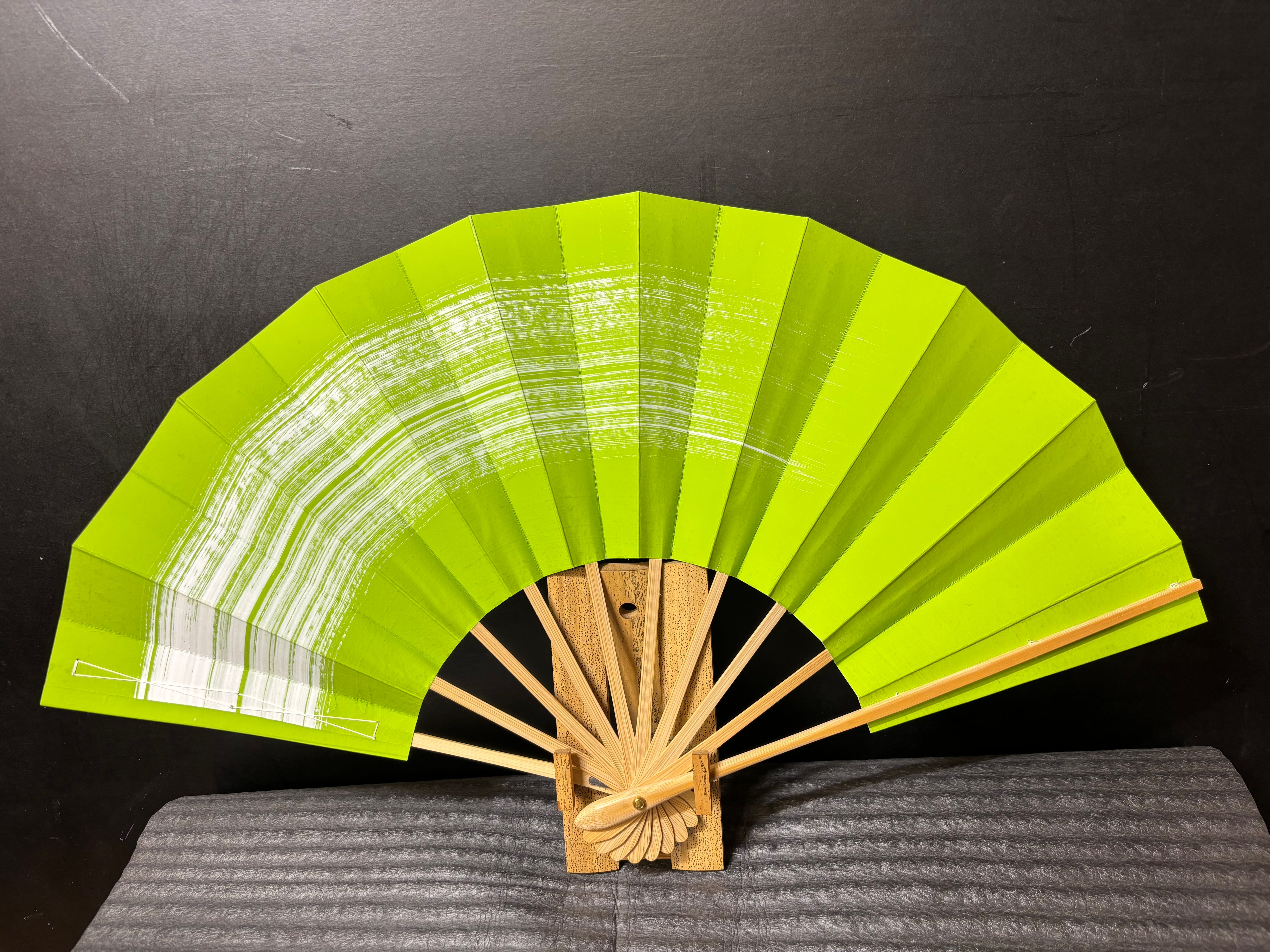 舞扇子 黄緑色地 白色かすみ 白竹【2509-502】