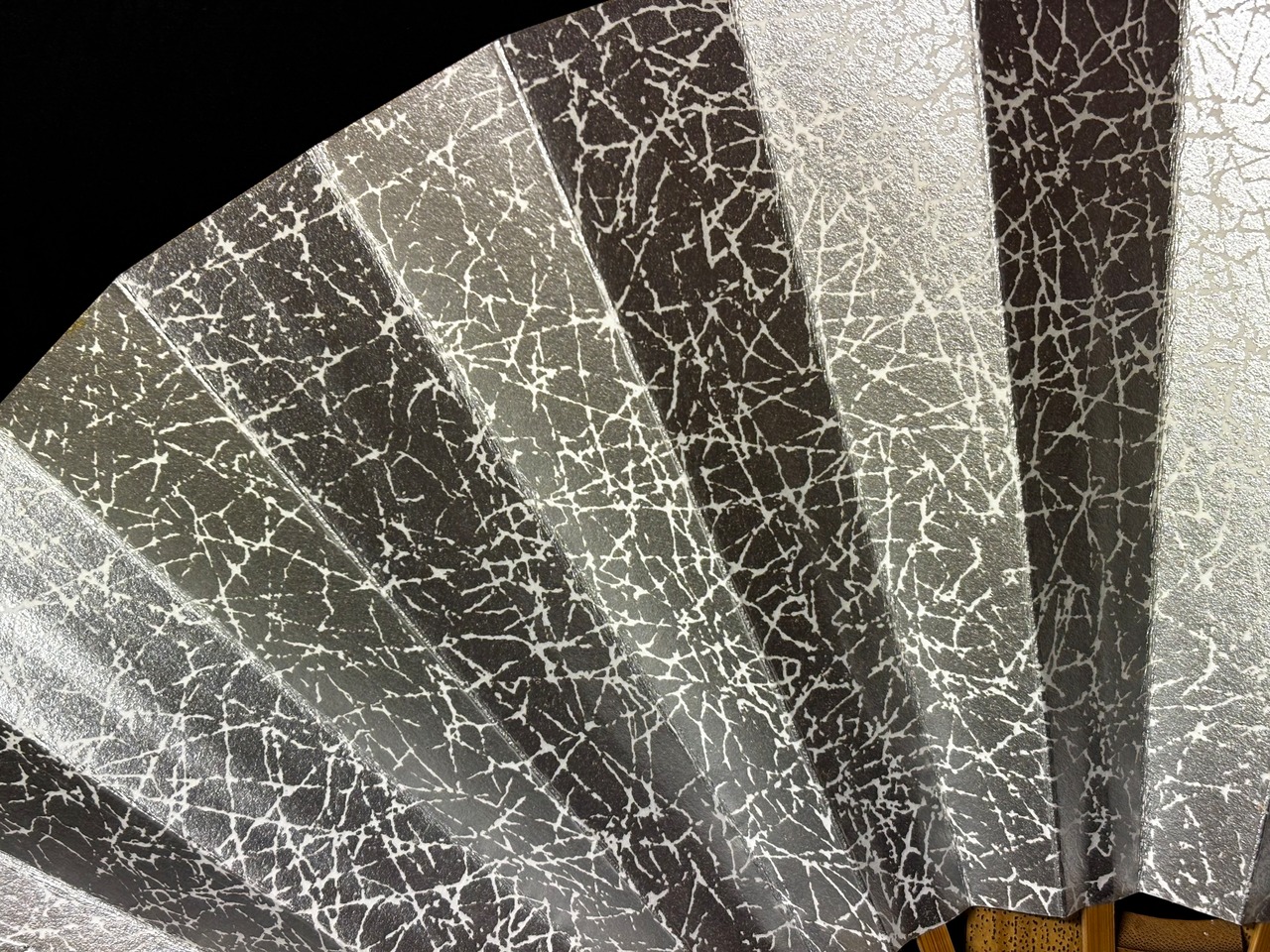 寸法は少し大きめの尺寸(約30㎝)、シンプルな無地の銀色のもみ押し地が、美しさと上品さを兼ね備えています。お稽古や特別なイベントなど、さまざまな場面でその存在感を発揮します。ぜひ、この舞扇子を手に取り、その特別な輝きを実感してみてください!