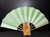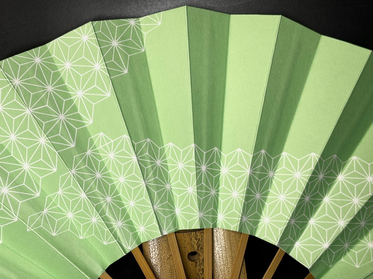 舞扇子 薄若葉色地 麻の葉柄 白竹【G-AZ1030】