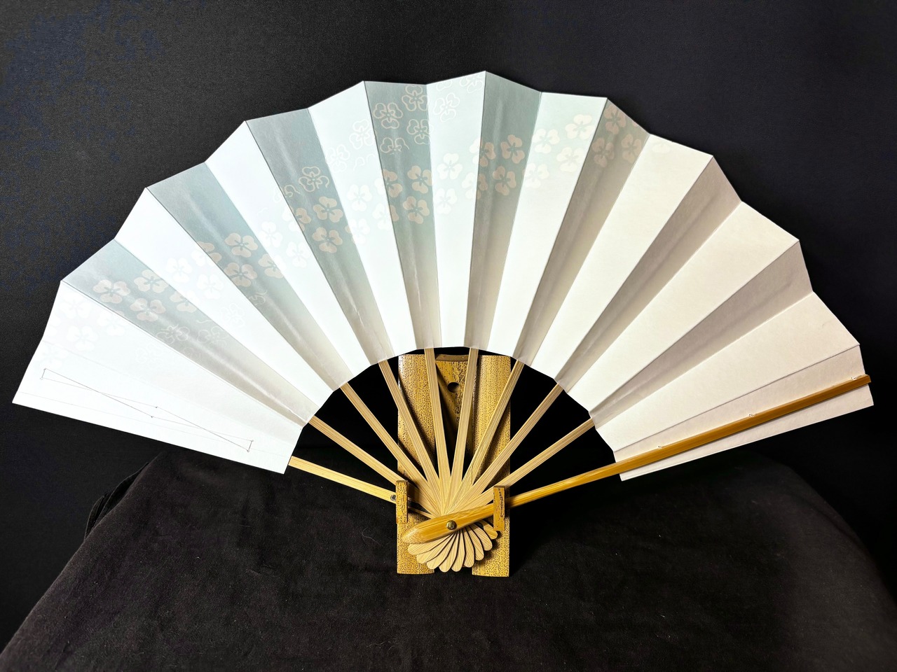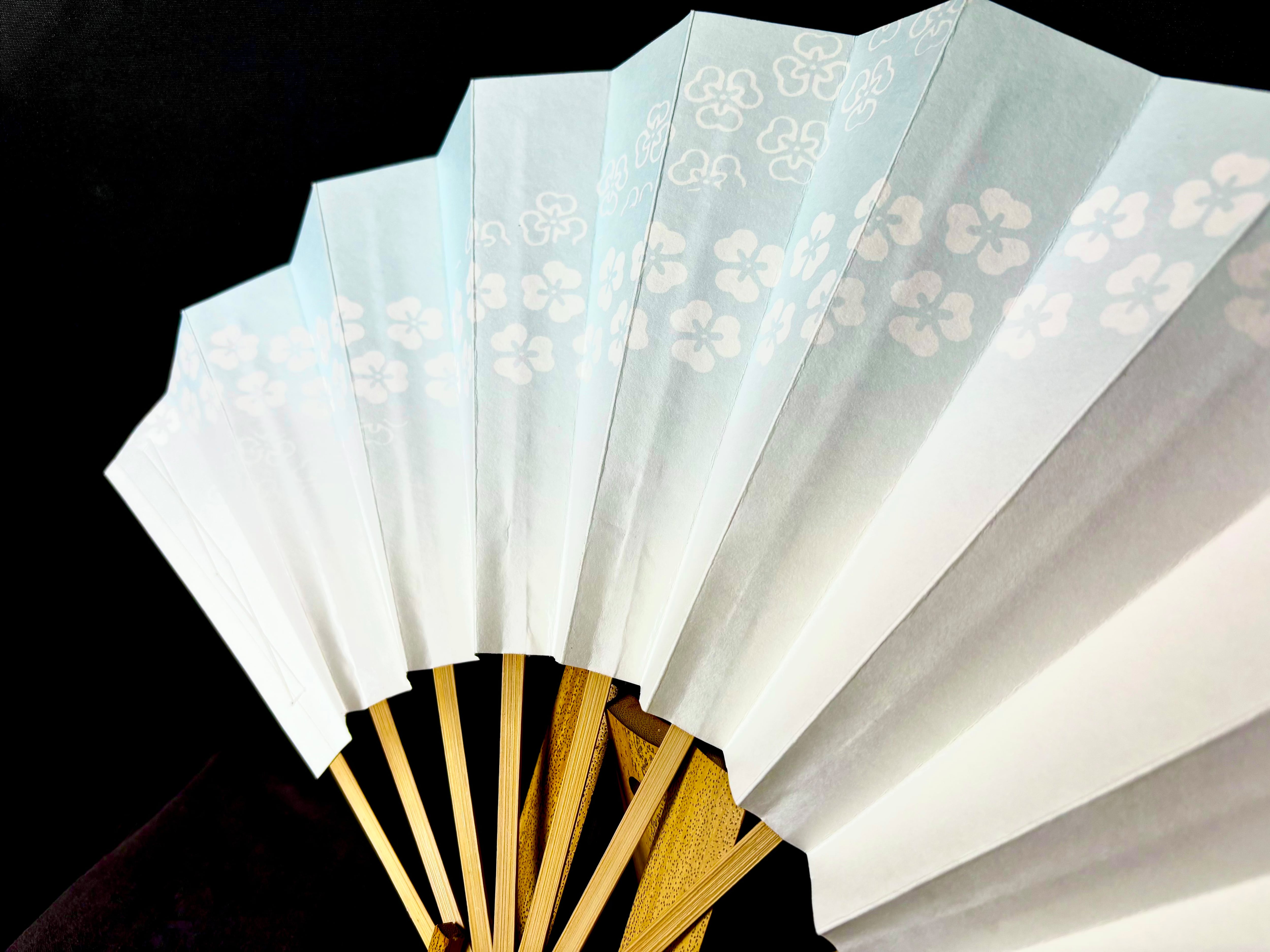 !訳あり!尺寸 舞扇子 水色花帯 白竹 【2603-005】