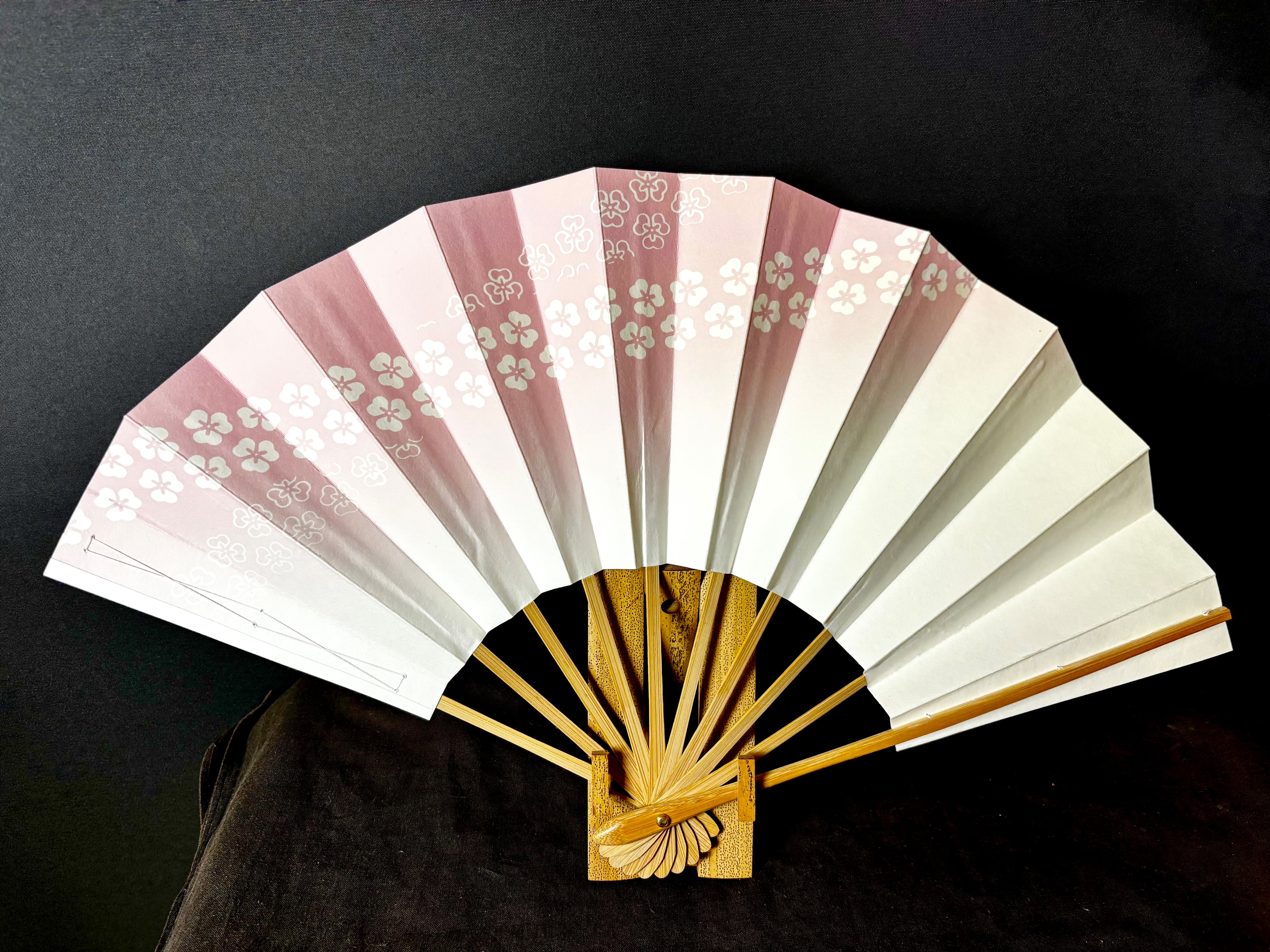 !訳あり!舞扇子 ピンク色花帯 白竹【2603-003】