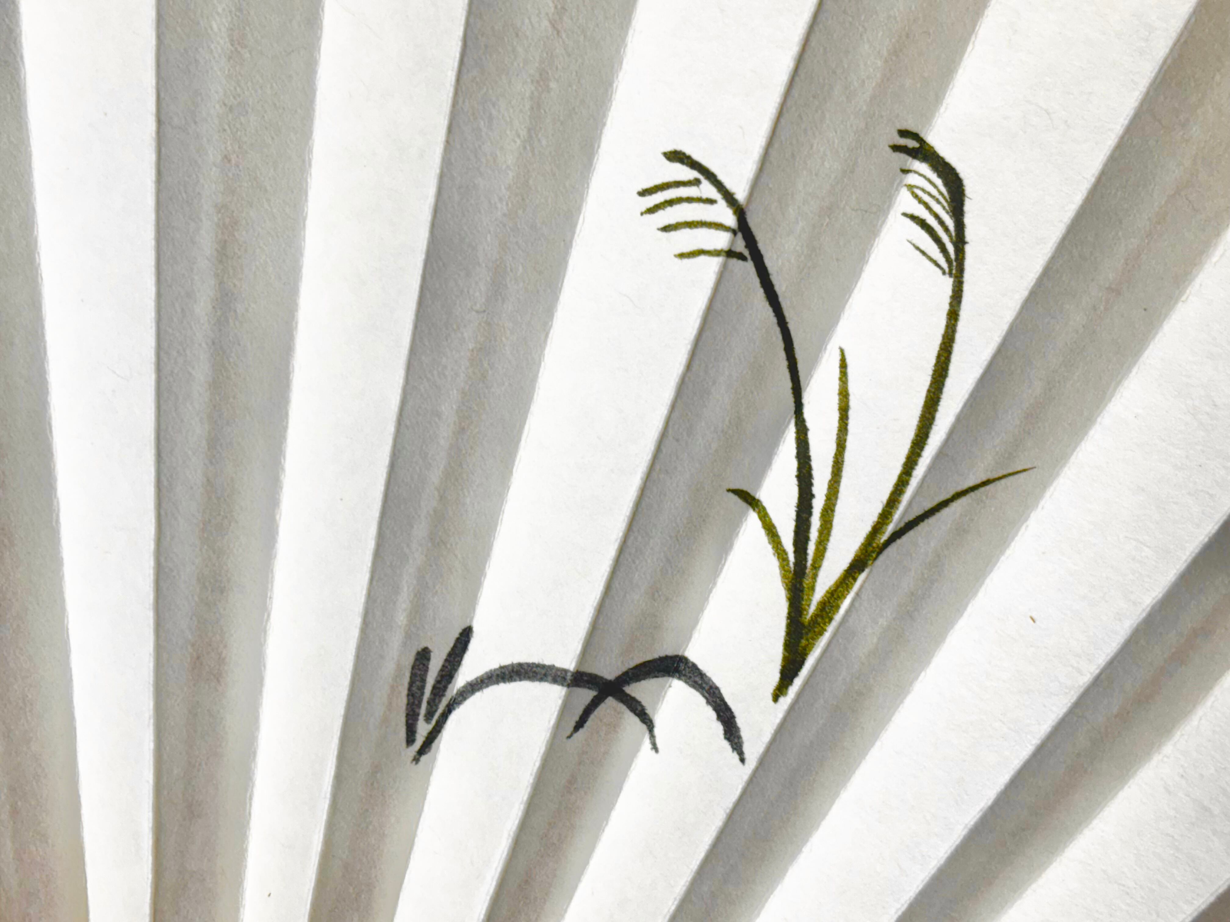 7寸5分 あおぎ扇子 つゆしばとススキ【2604-016】